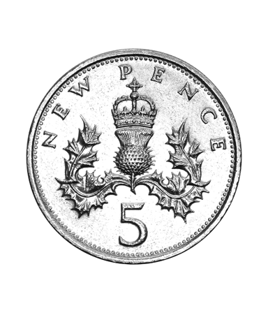 In the new system, the pound would remain the same, but instead of consisting of 20 shillings, or 240 old pence, the pound would be made up of 100 new pence (symbol p). It followed that the one shilling coin would be equal to 5 new pence, and the two shilling coin would be equal to 10 new pence.