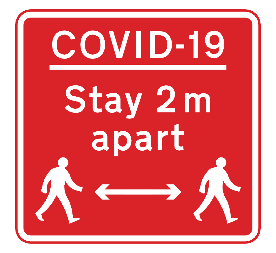 The Units of Measurement Regulations require that standard metric units are used for all measurements regarding health and public safety. Recommendations were made for people to keep 2 metres apart in public spaces. Signs reminding people to keep this distance apart became a common sight in stores.
