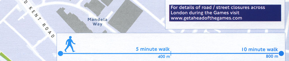 A distance scale showing minutes – London Summer 2012 Map, TfL
